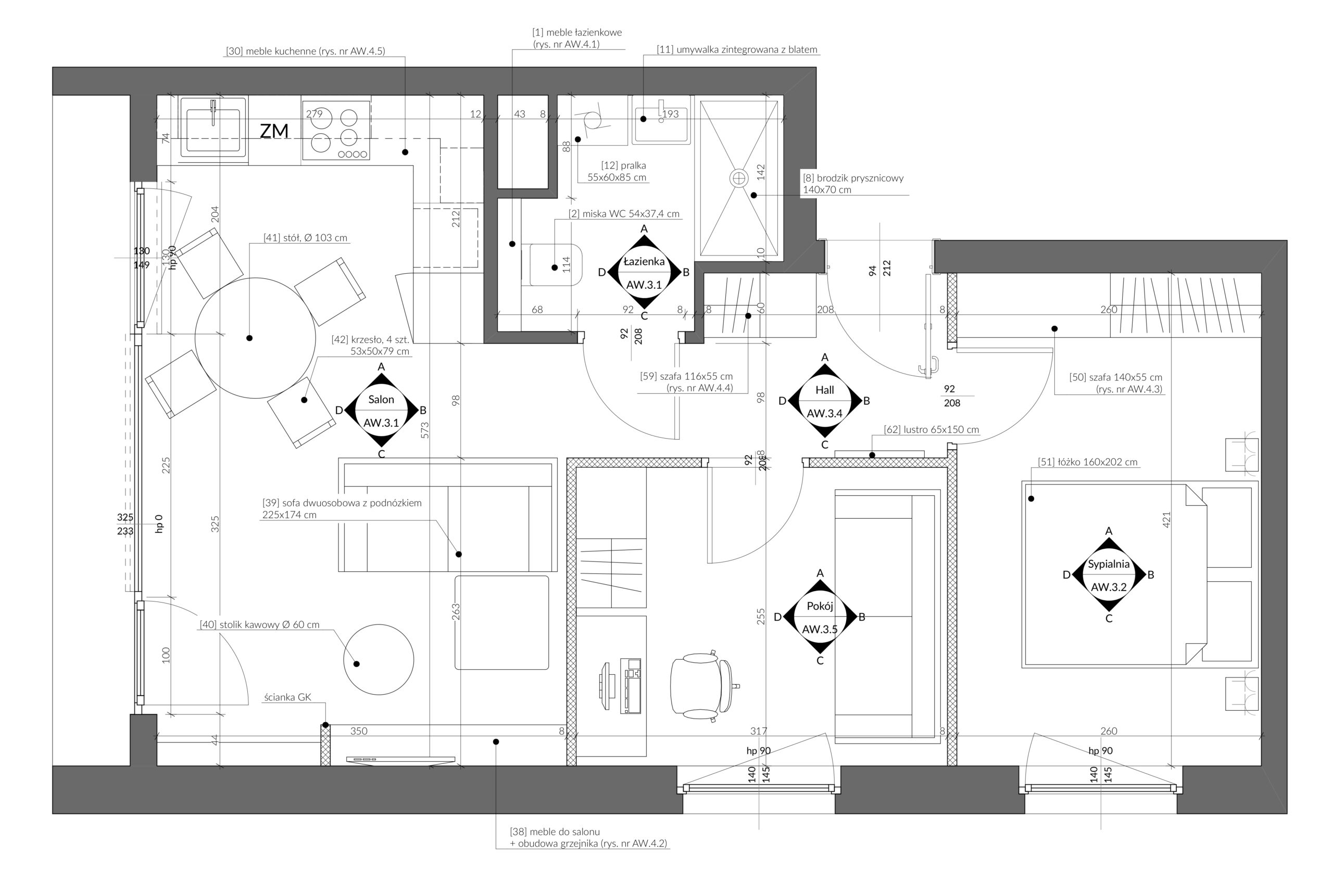 Pełen projekt koncepcyjny i wykonawczy wnętrz, w tym: